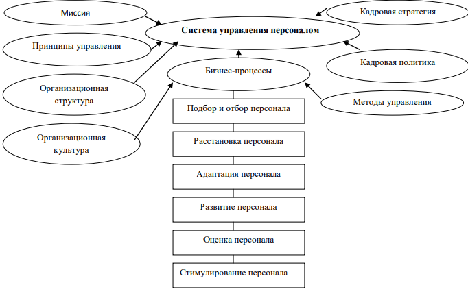 Система управления персоналом – предполагает формирование целей, функций, организационной структуры управления персоналом, разработку концепции и стратегии кадровой политики, совокупность принципов и методов управления кадрами в организации. Составляющими системы управления персоналом являются: